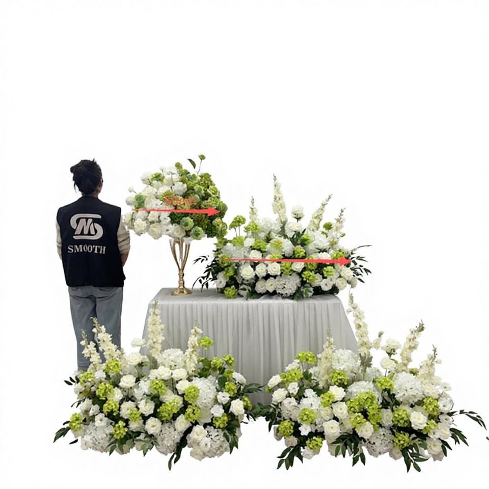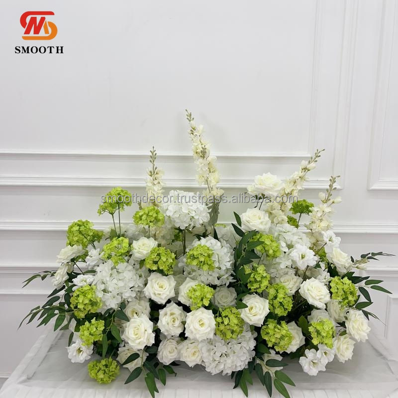 พรมปูทางเดินงานแต่งงานสีเขียวขาวลายกุหลาบผสมผสาน ทำจากผ้าไหมเทียม ขนาด 1.8-2.4 เมตร ขายดี