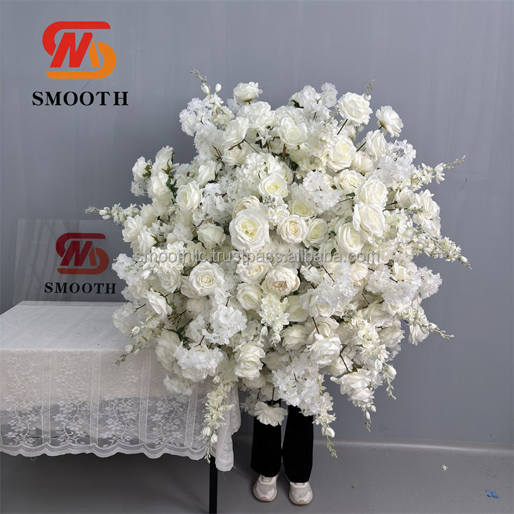 ลูกบอลดอกไม้ประดิษฐ์ประดับโต๊ะในวันแต่งงานทรงกลมขนาด100ซม. ทำจากผ้าไหมประดับดอกกุหลาบ
