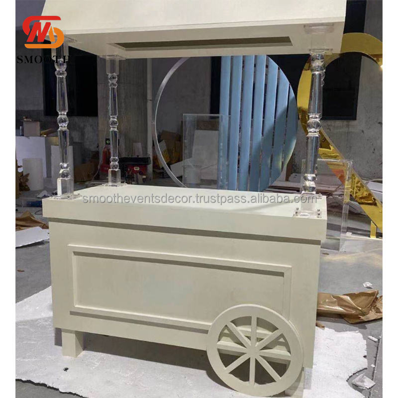 รถเข็นขนมอะคริลิคสีขาวมีล้อรถเข็นขนมเคลื่อนที่ชื่อผลิตภัณฑ์
