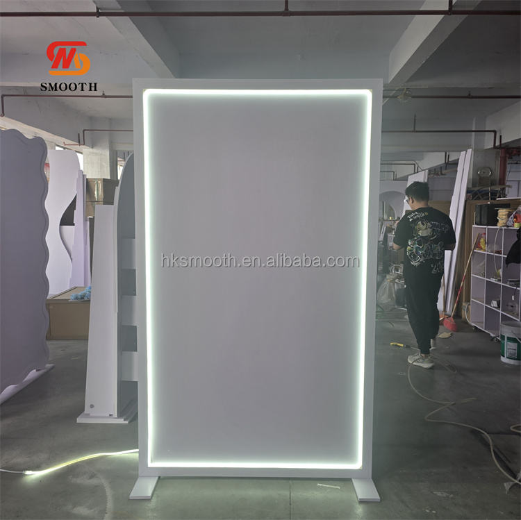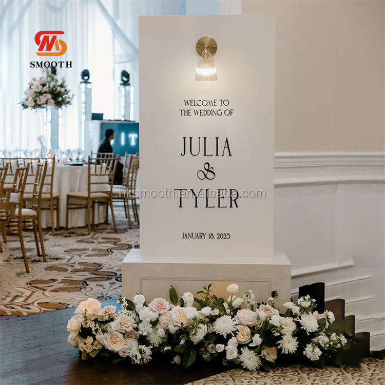 ฉากหลังอะคริลิคสีขาวเรียบเนียนพร้อมไฟ LED สำหรับงานแต่งงาน ป้ายต้อนรับ ซุ้มอะคริลิคสีขาวพร้อมไฟ