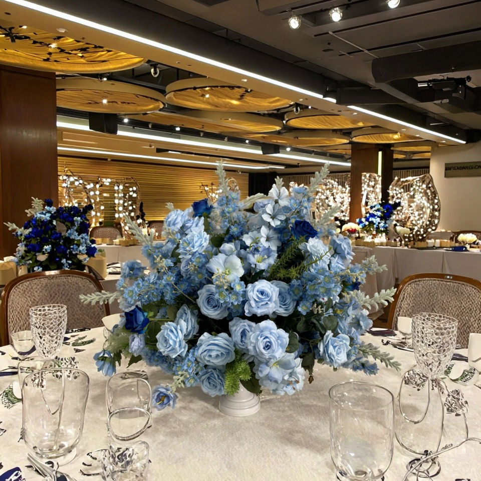 ดอกไม้สีฟ้าอ่อนแบบเรียบ 3 มิติ ทำจากผ้าไหม สำหรับตกแต่งงานแต่งงาน ใช้เป็นของประดับตกแต่งโต๊ะ