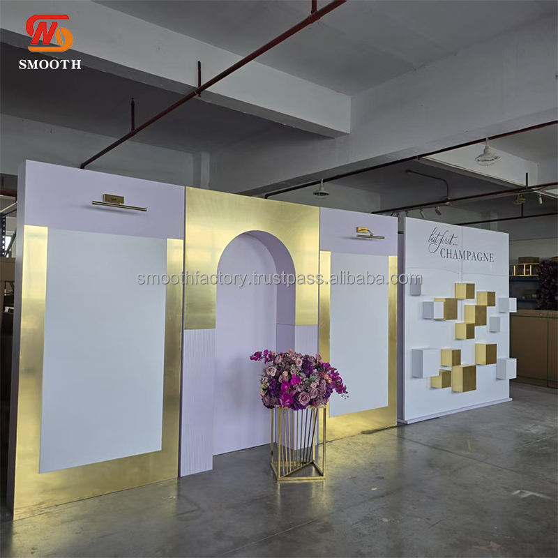 ฉากหลังอะคริลิคต้อนรับงานแต่งงานที่หรูหราเรียบเนียนฉากหลังตกแต่งเวทีปาร์ตี้วันเกิดฉากหลังอะคริลิค