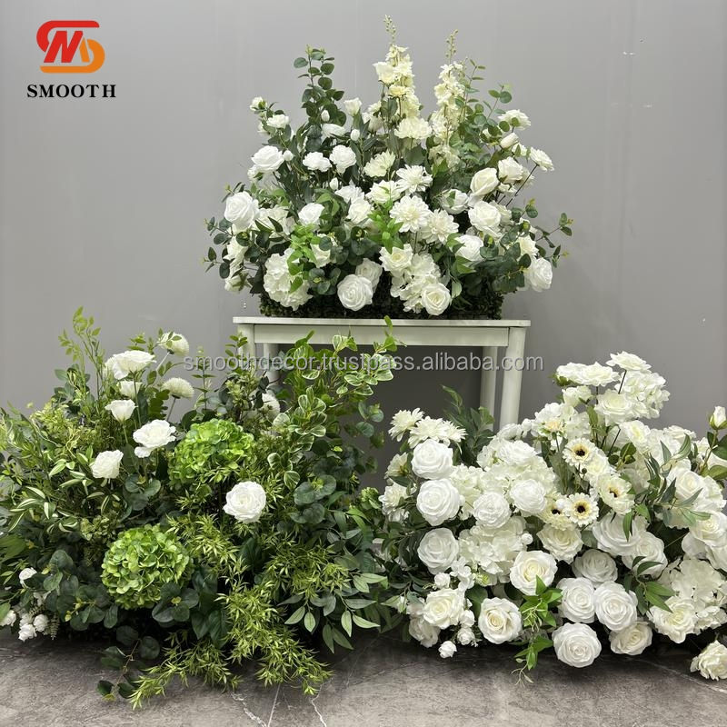 ผ้าคาดโต๊ะลายดอกกุหลาบสีขาวตกแต่งทางเดินทำจากผ้าไหมเทียมตกแต่งแถวดอกไม้ประดิษฐ์หรูหราเรียบ