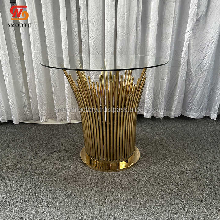 โต๊ะกรอบโลหะสีทองใสเรียบหรูสำหรับโถงแต่งงานตอนบ่ายงานเลี้ยงวันเกิดน้ำชาสำหรับรับประทานอาหารกลางแจ้งสำหรับโรงแรม