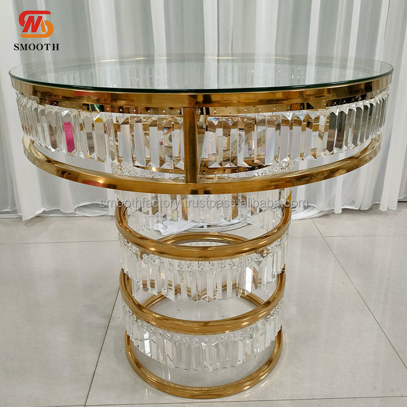 โต๊ะคริสตัลโลหะสีทองใสเรียบหรูหราสำหรับงานแต่งงานห้องโถงวันเกิดโต๊ะงานปาร์ตี้