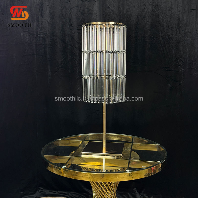 ที่ตั้งดอกไม้โลหะสีทองสำหรับงานแต่งงานแผงคริสตัลแบบแขวนดีไซน์หรูหราเรียบ
