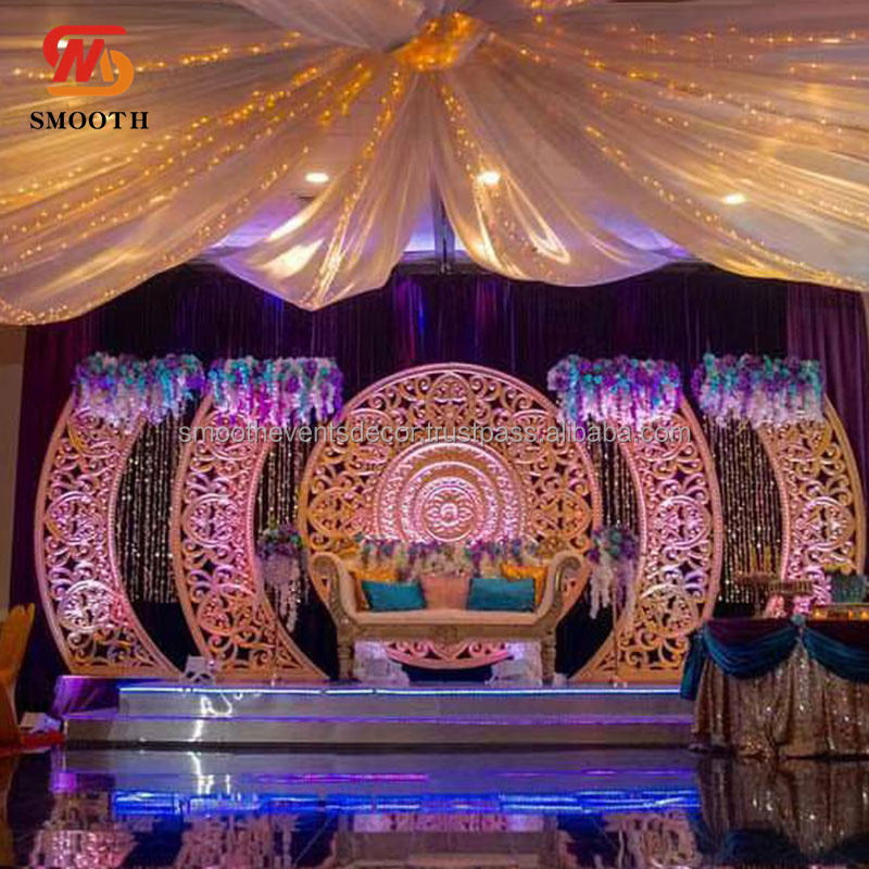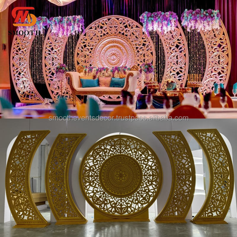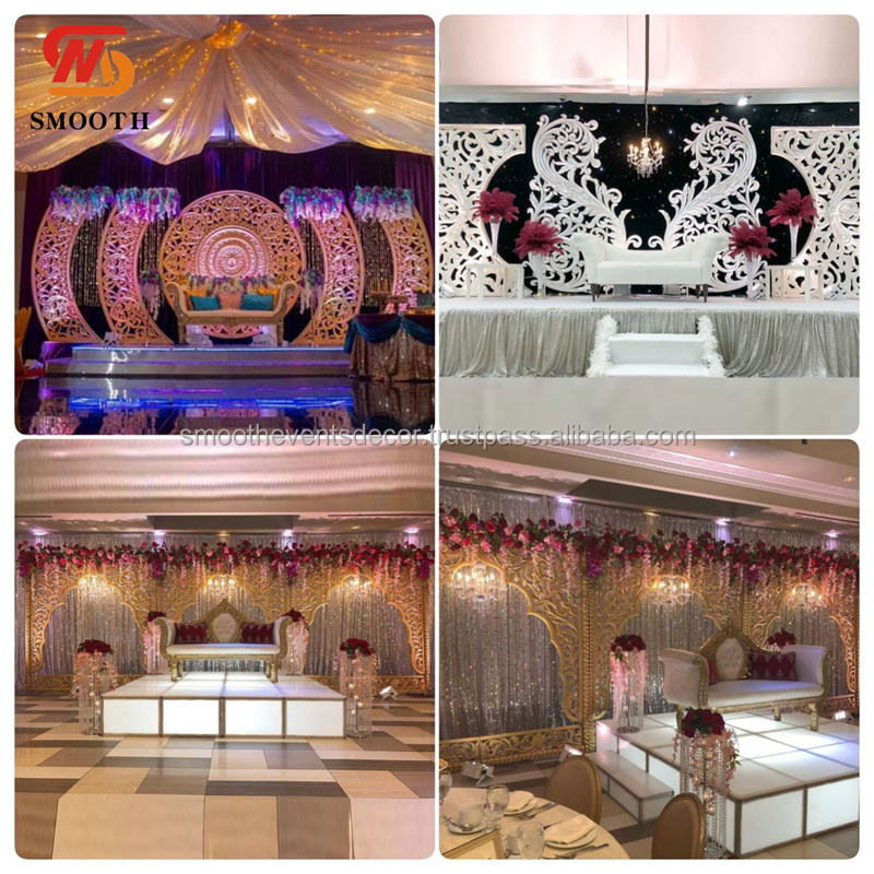 ชุดฉากหลังอะคริลิคสีทองหรูหราเรียบเนียนฉากหลังตกแต่งเวทีแต่งงานฉากหลังที่กำหนดเองสำหรับฉากหลังแต่งงาน