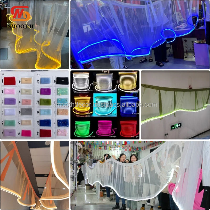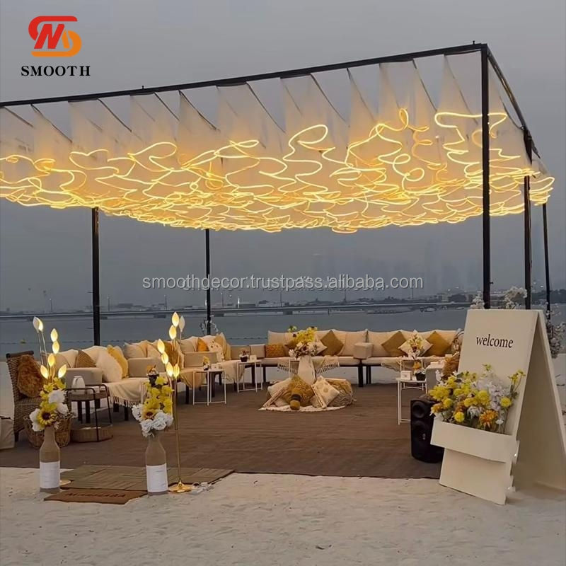 ฉากหลังอะคริลิกแบบเรียบ ผ้าม่านสายไฟประดับเพดาน สำหรับงานแต่งงาน ทนทาน หรูหรา