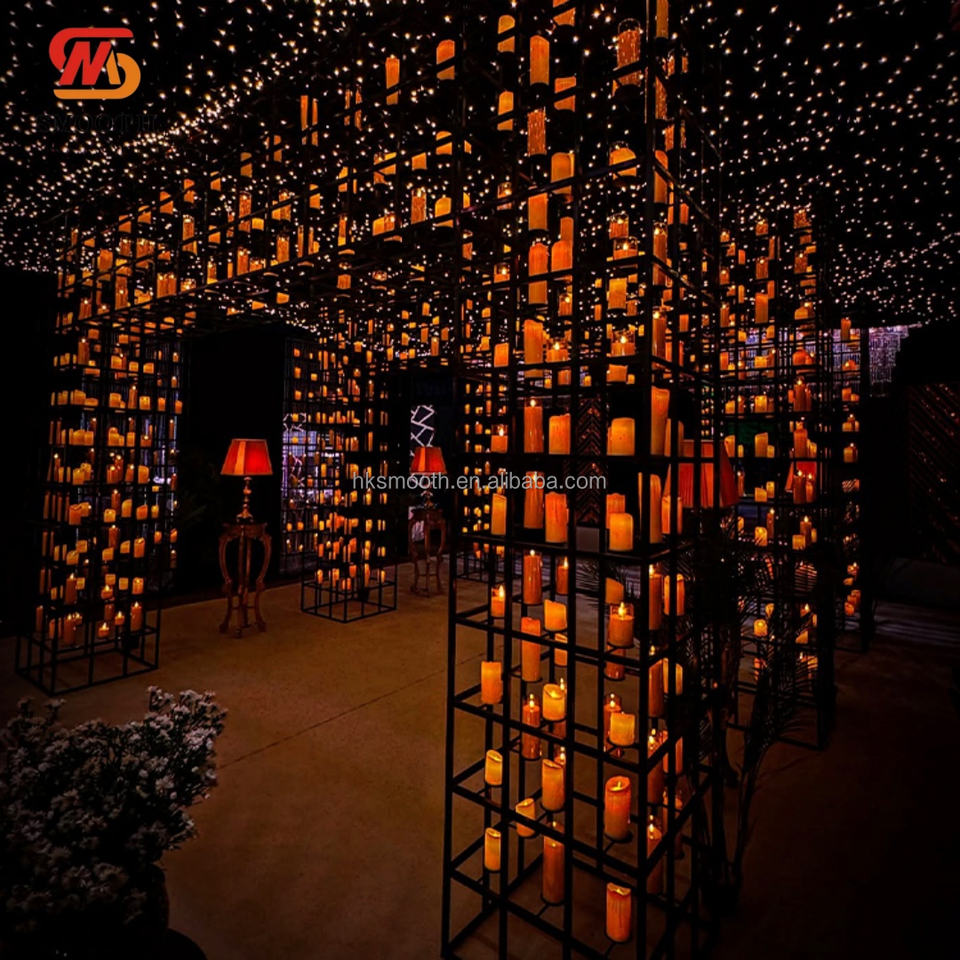 ผนังโลหะลายตารางสีดำสำหรับวางเทียน