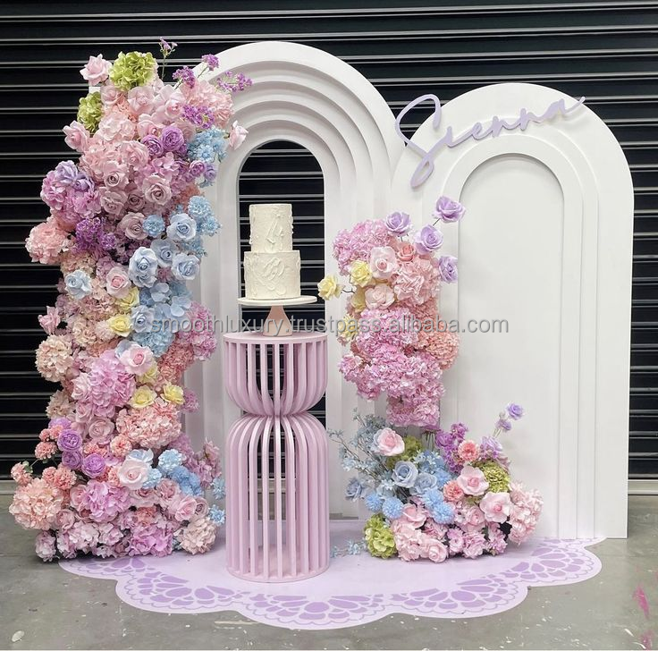 แท่นโชว์สีชมพูสำหรับทารกทำจากพีวีซีเรียบทันสมัยแท่นโชว์ดอกไม้สำหรับงานแต่งงานงานปาร์ตี้