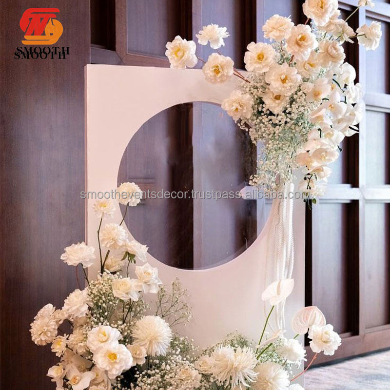 ซุ้มแต่งงานแบบอะคริลิคแบบเรียบทันสมัยฉากหลังกล่องดอกไม้ป้ายต้อนรับชั้นขนาดใหญ่สำหรับเวทีพิธี