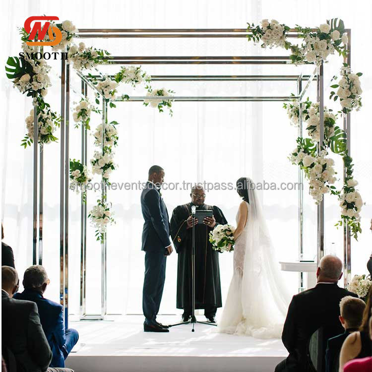 ฉากหลังงานแต่งงานทันสมัยแบบเรียบหรู โครงเหล็กชูปาห์สีทอง รูปทรงโค้งสี่เหลี่ยม
