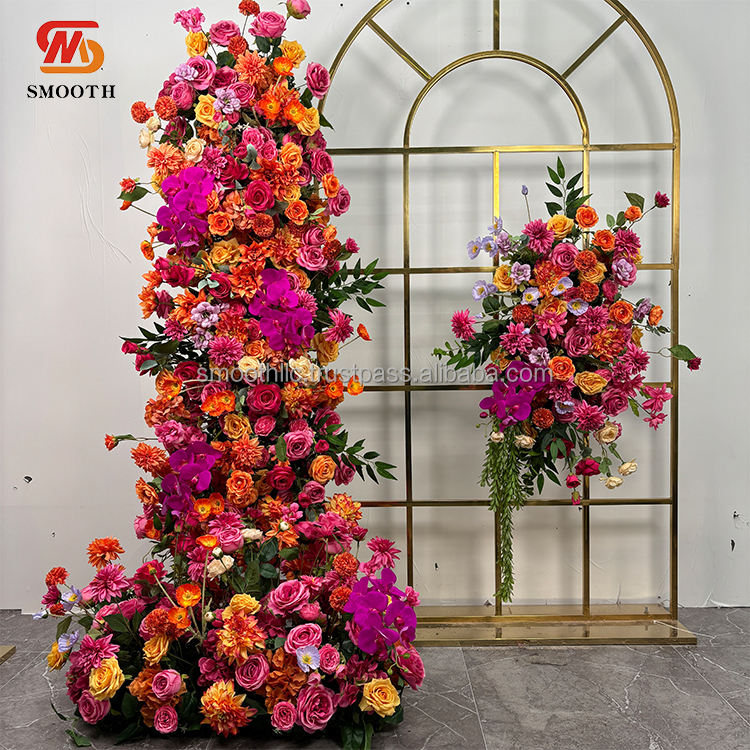แผงดอกกล้วยไม้สีชมพูยอดนิยมลายดอกกุหลาบสีส้มและสีชมพูสำหรับจัดงานแต่งงานสินค้ามาใหม่