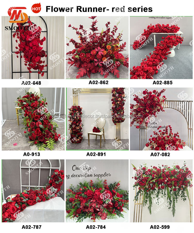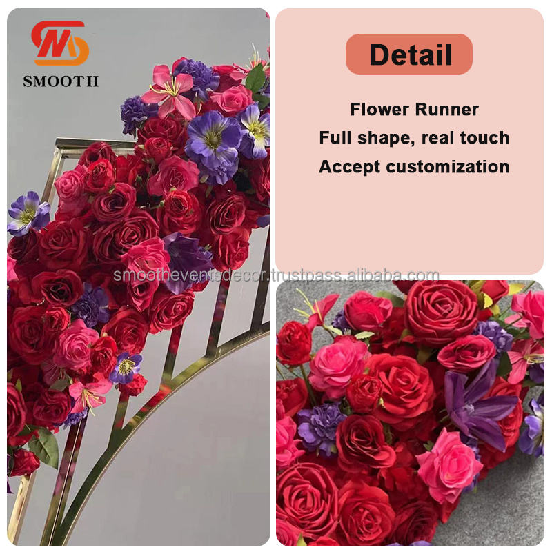 ผ้าคาดโต๊ะลายดอกกุหลาบสีแดงเรียบหรูดอกไม้ประดิษฐ์สีม่วงตกแต่งงานแต่งงาน