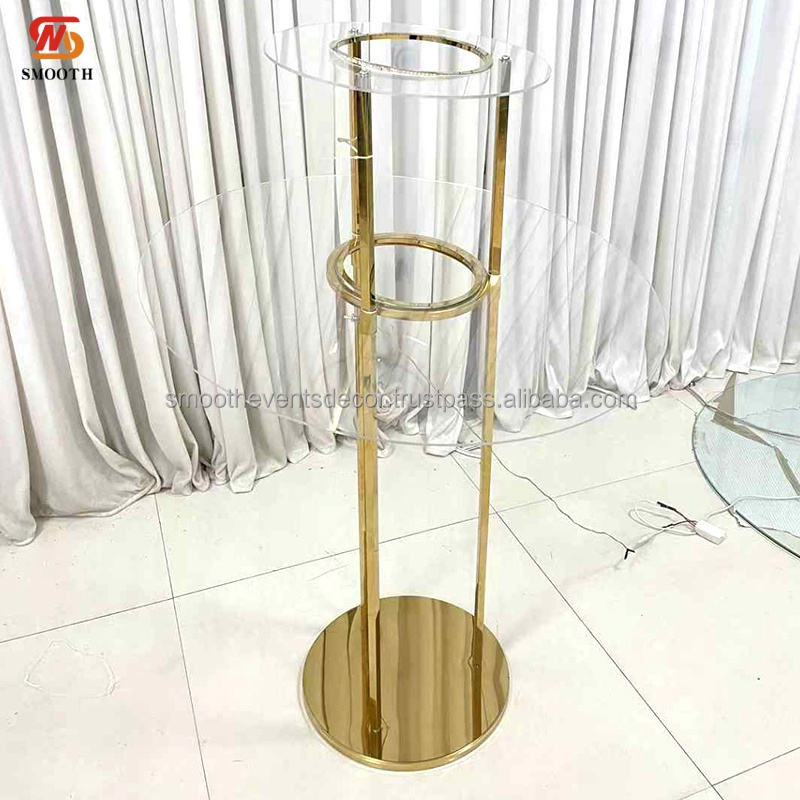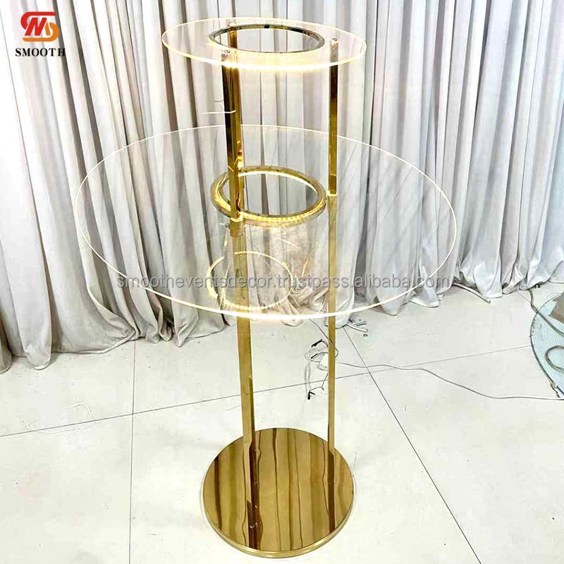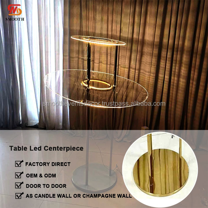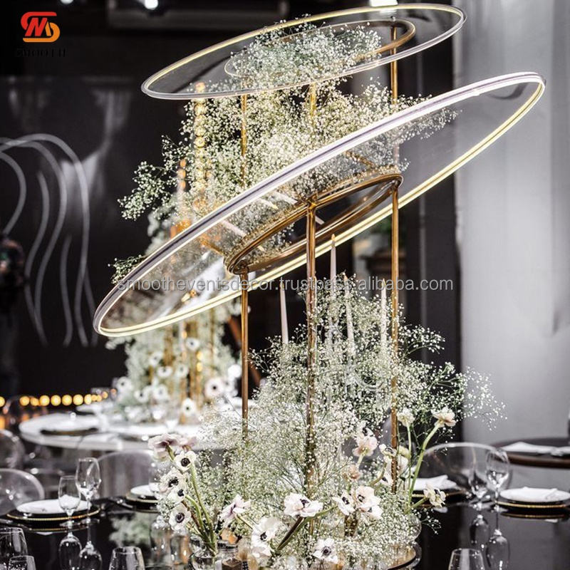 ขาตั้งดอกไม้ตกแต่งโต๊ะรุ่นใหม่ ดีไซน์เรียบหรู พร้อมไฟ LED ฐานสีทอง สำหรับตกแต่งโต๊ะ