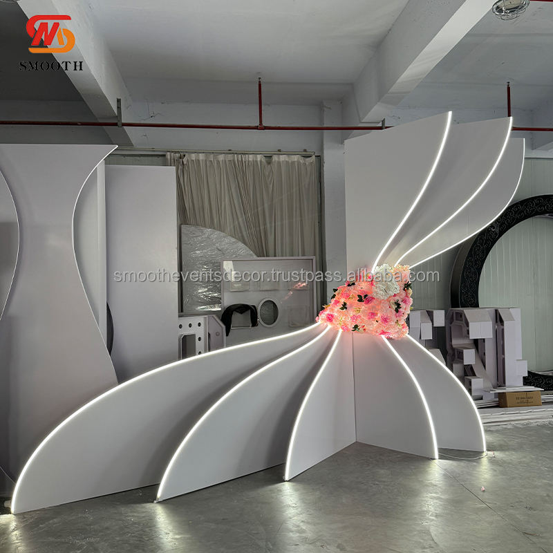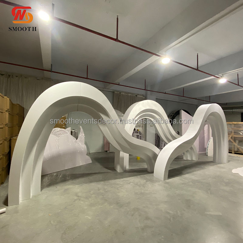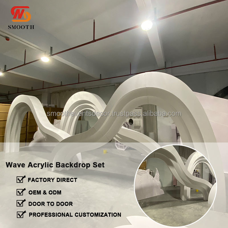 พื้นหลังเวทีแต่งงานโค้งอะคริลิคสีขาวเรียบมาใหม่ฉากหลังโค้ง5D สำหรับตกแต่งงานแต่งงาน