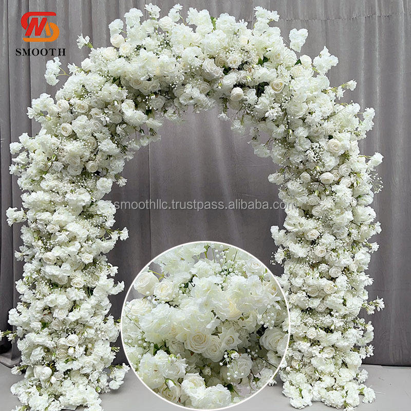 ซุ้มดอกไม้สีขาวรูปโค้ง 8 ฟุต ดีไซน์ใหม่ สำหรับตกแต่งฉากหลังงานแต่งงาน