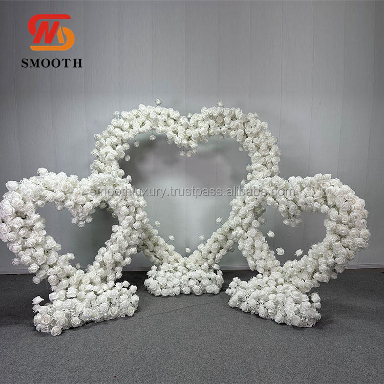 ซุ้มดอกไม้รูปหัวใจสีแดงประดิษฐ์สำหรับตกแต่งงานแต่งงาน ดีไซน์ใหม่สวยหรู