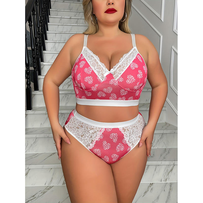 ชุดบราสายรัดสปาเก็ตตี้ขอบลูกไม้ลายดอกไม้แนวเส้นลวดขนาดพลัสไซส์เซ็กซี่แบบเรียบ