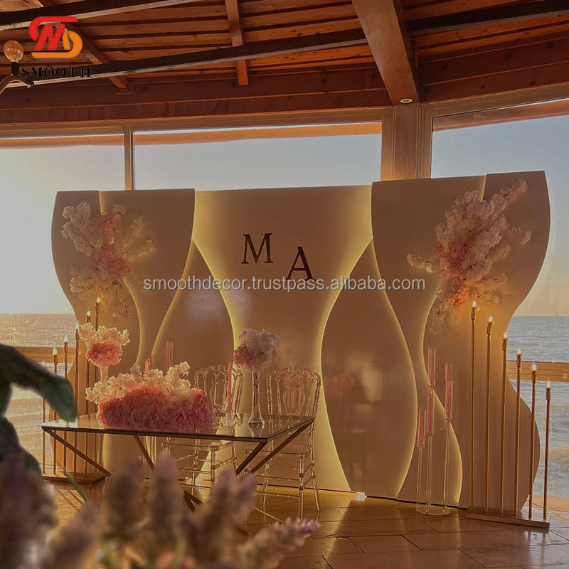 ชื่อสินค้า:ฉากตกแต่งงานแต่งงาน ผนังฉากหลังอะคริลิก PVC สีขาว