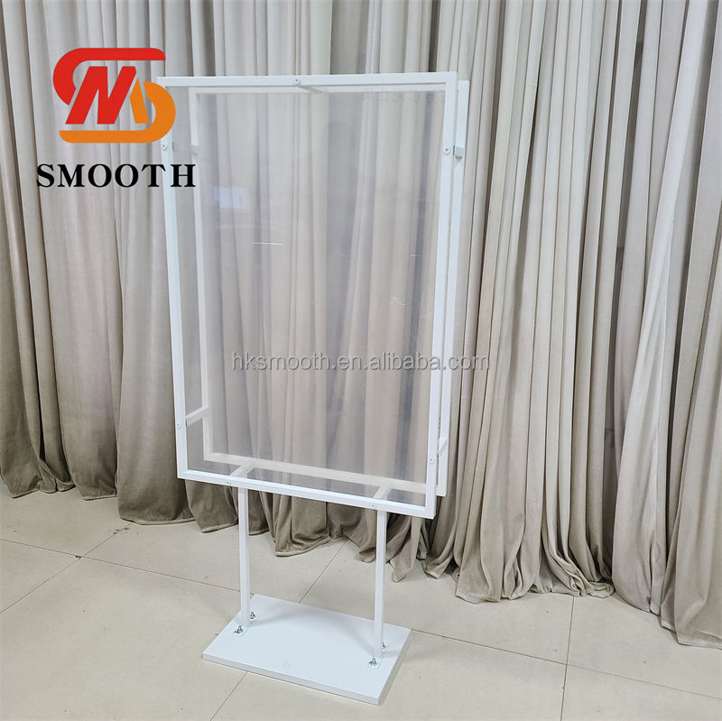 ป้ายต้อนรับงานแต่งงานกลางแจ้งแบบเรียบหรู โครงเหล็กโค้ง พร้อมขาตั้งเหล็กสำหรับตกแต่งพื้นหลังทางเข้า