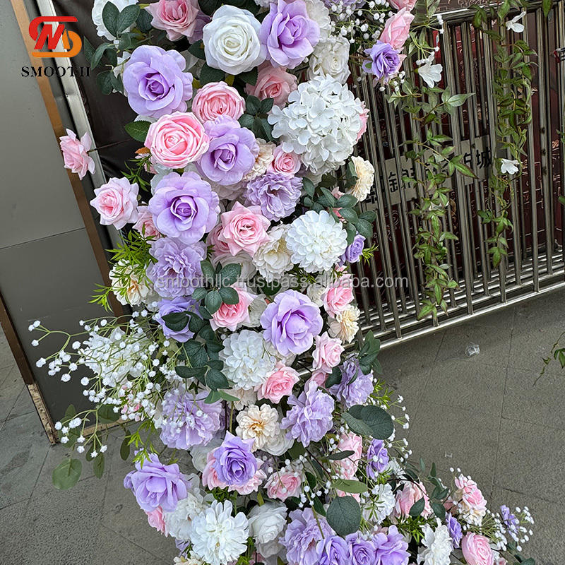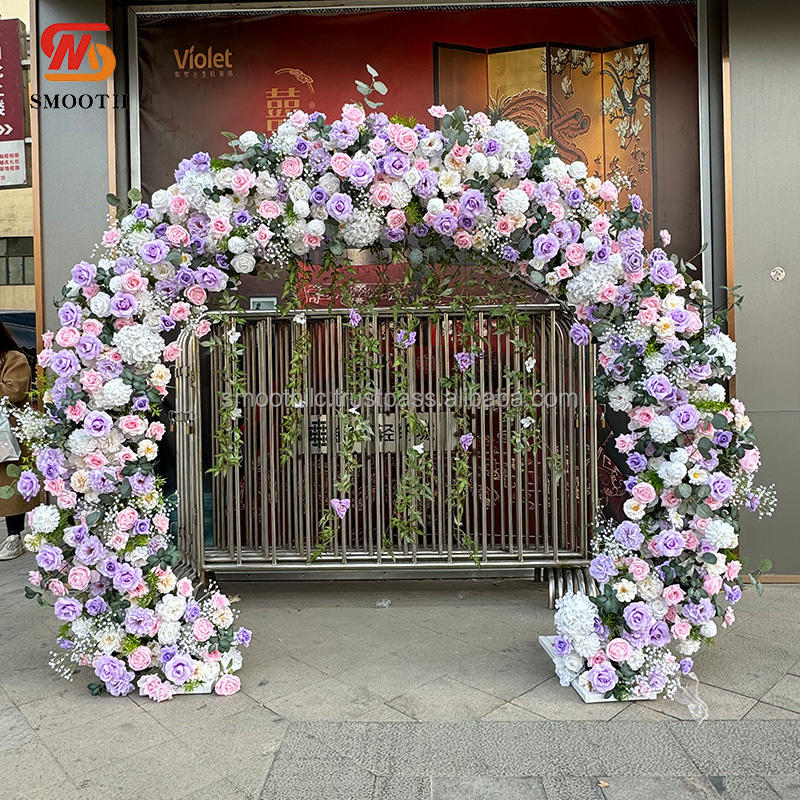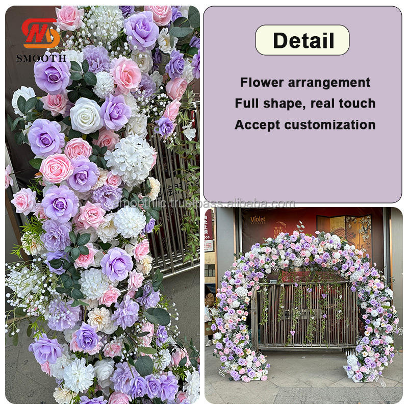ซุ้มดอกไม้ประดิษฐ์สีม่วงทรงกลมสำหรับงานแต่งงานกลางแจ้งเรียบ