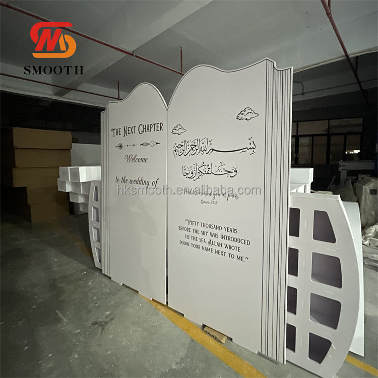 ฉากหลังงานแต่งงาน PVC เรียบ ฉากหลังอะคริลิคสีขาวทรงโค้ง รูปทรงหนังสือ ฉากหลังงานแต่งงาน 3 มิติ ตกแต่งเวที