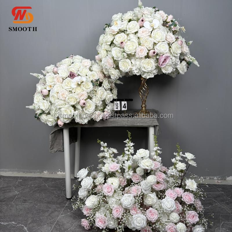 ลูกบอลดอกไม้ปลอมดอกไฮเดรนเยียเทียมขนาดใหญ่ประดับกลางโต๊ะสำหรับจัดงานแต่งงาน