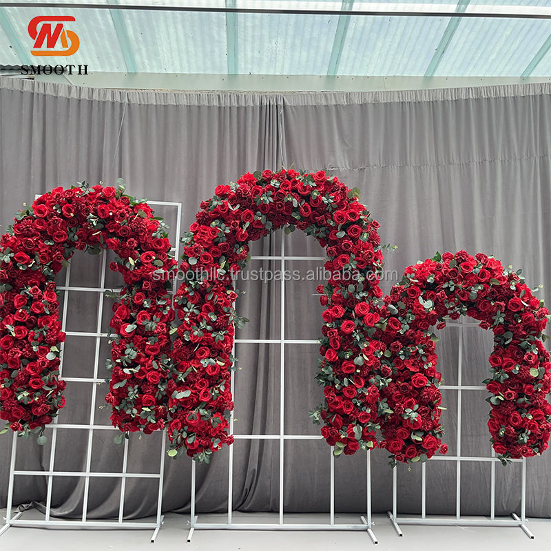 ที่วิ่งแถวดอกไม้ผ้าไหมเทียมสีชมพูเรียบสำหรับฉากหลังซุ้มแต่งงาน