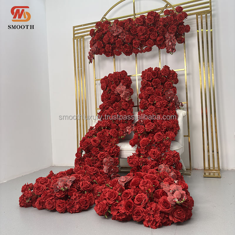การจัดดอกไม้ประดิษฐ์สีแดงเรียบฉากหลังแต่งงานผ้าไหมประดิษฐ์แผงดอกไม้ตกแต่งงานปาร์ตี้