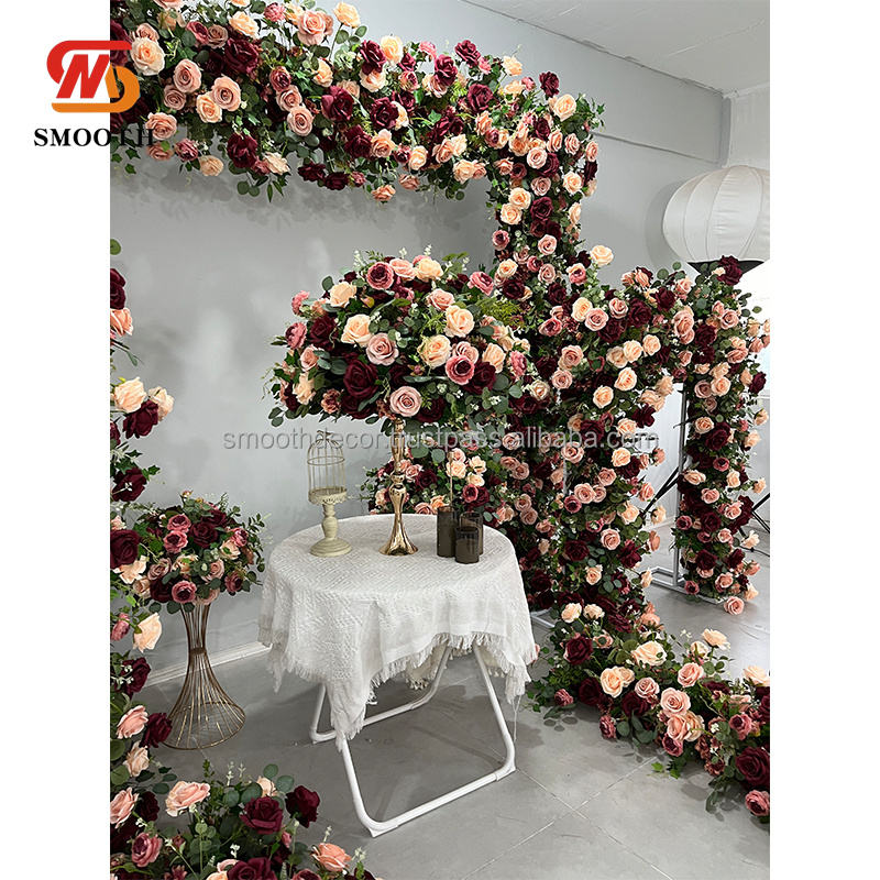 แผงลายดอกกุหลาบทำจากผ้าไหมเนื้อเรียบใช้ตกแต่งผนังฉากหลังตกแต่งงานแต่งงานด้วยลูกบอลดอกไม้