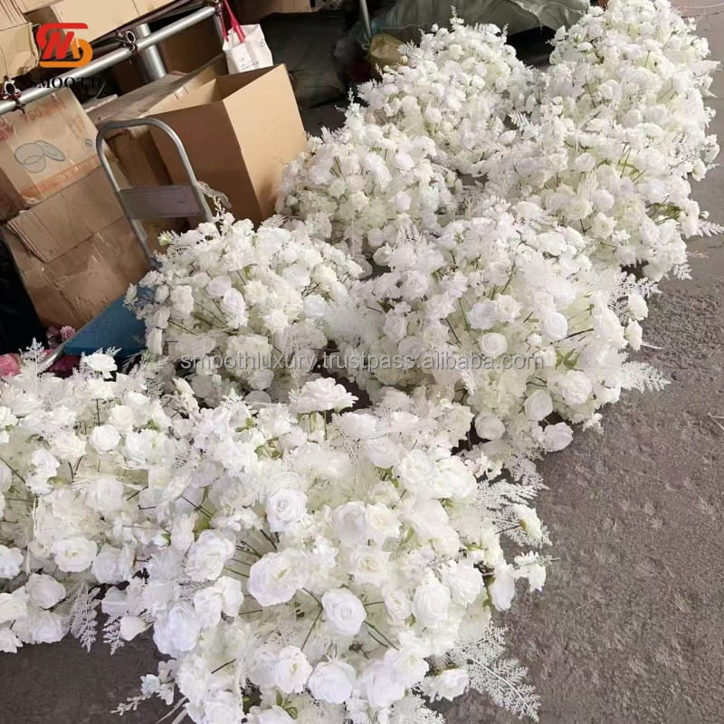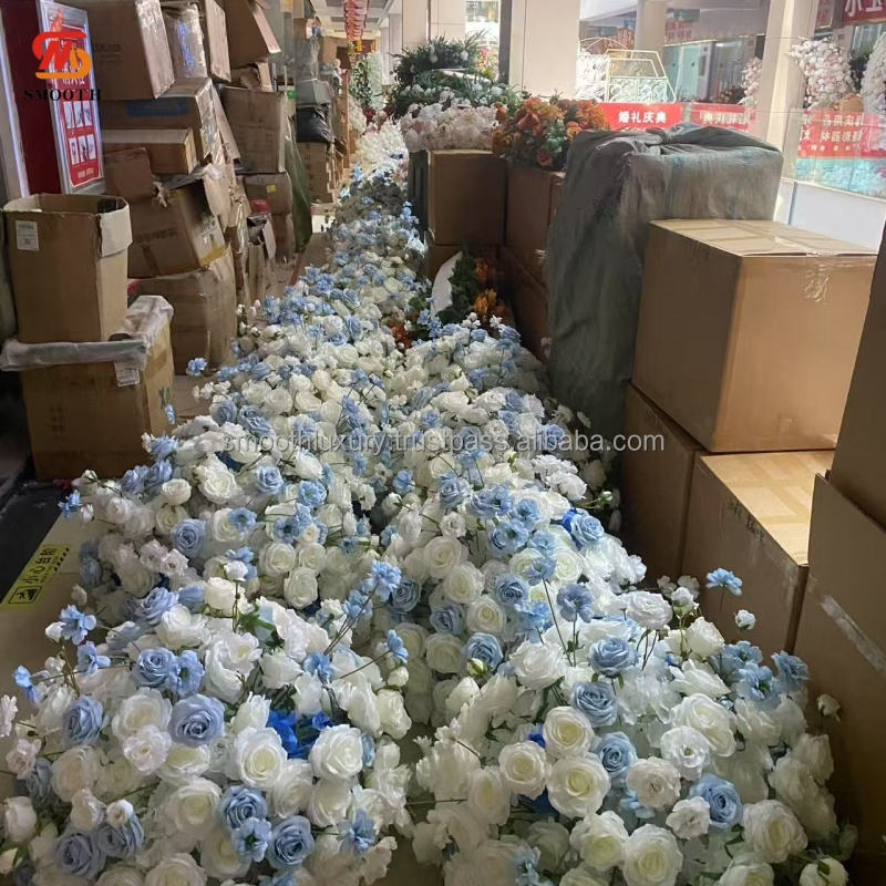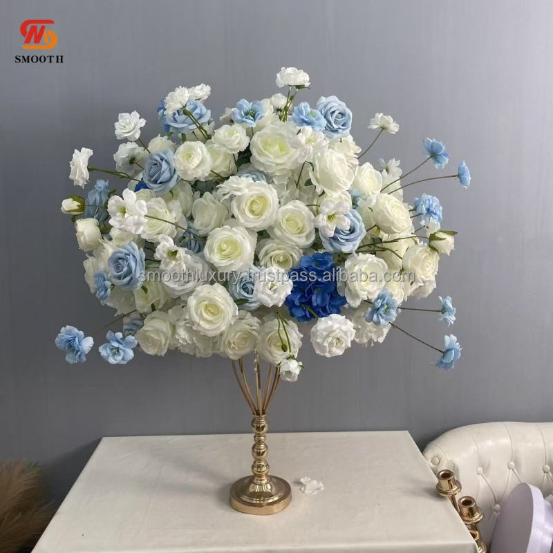 ลูกบอลสำหรับงานแต่งงานผิวสัมผัสนุ่มเรียบเนียนประดับกลางดอกกุหลาบสีฟ้าใส