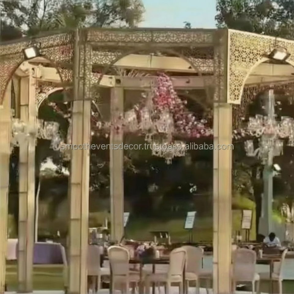 Chuppah ที่มีคุณภาพสูงเรียบหลังคาโลหะสีขาวซุ้มศาลาจัดเลี้ยงยืนฉากหลังตกแต่งงานแต่งงาน