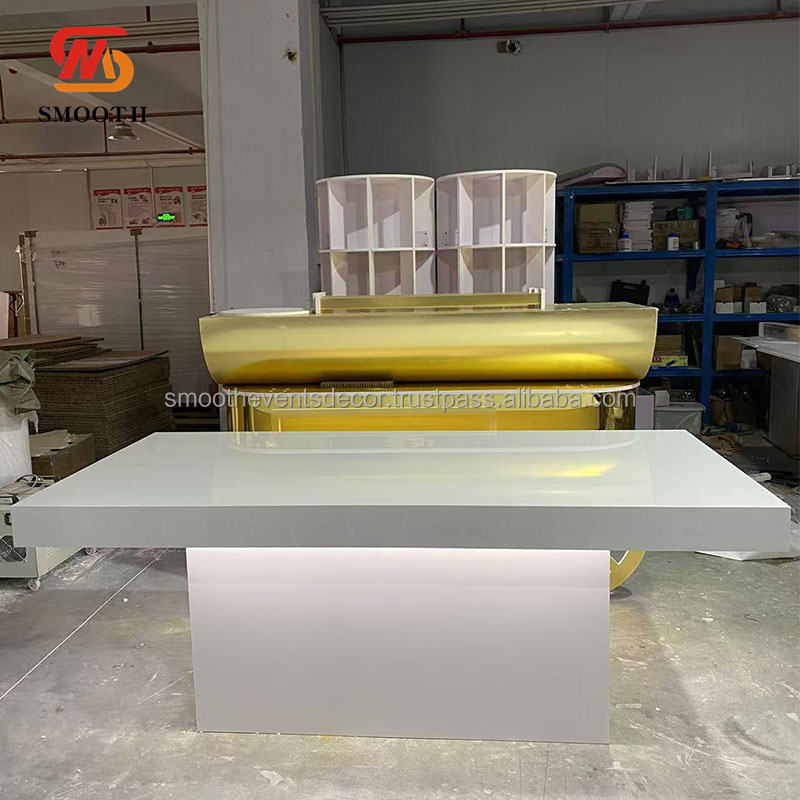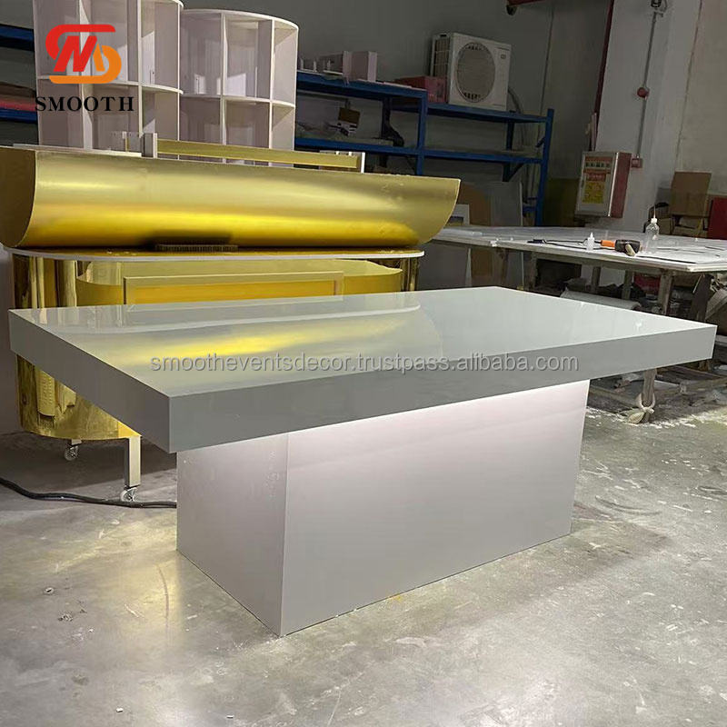 โต๊ะอะคริลิกแสงสีขาวสวยเรียบโต๊ะจัดเลี้ยงในงานแต่งงานโต๊ะจัดเลี้ยงสำหรับเจ้าสาวและเจ้าบ่าว