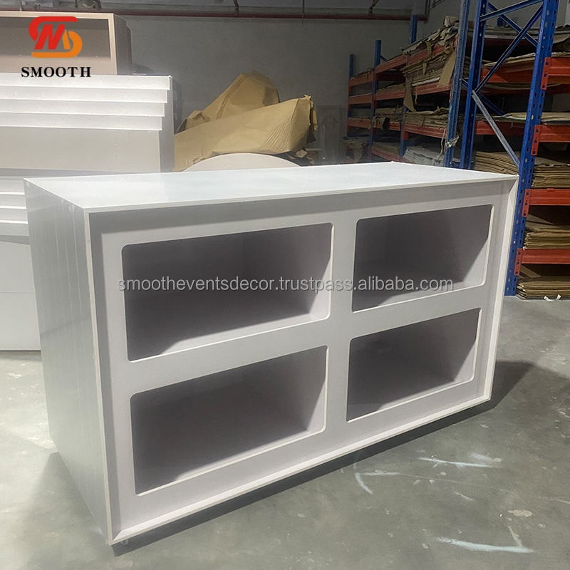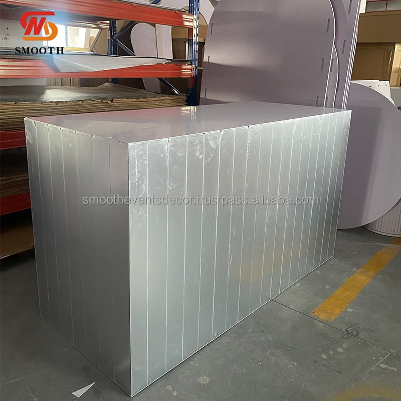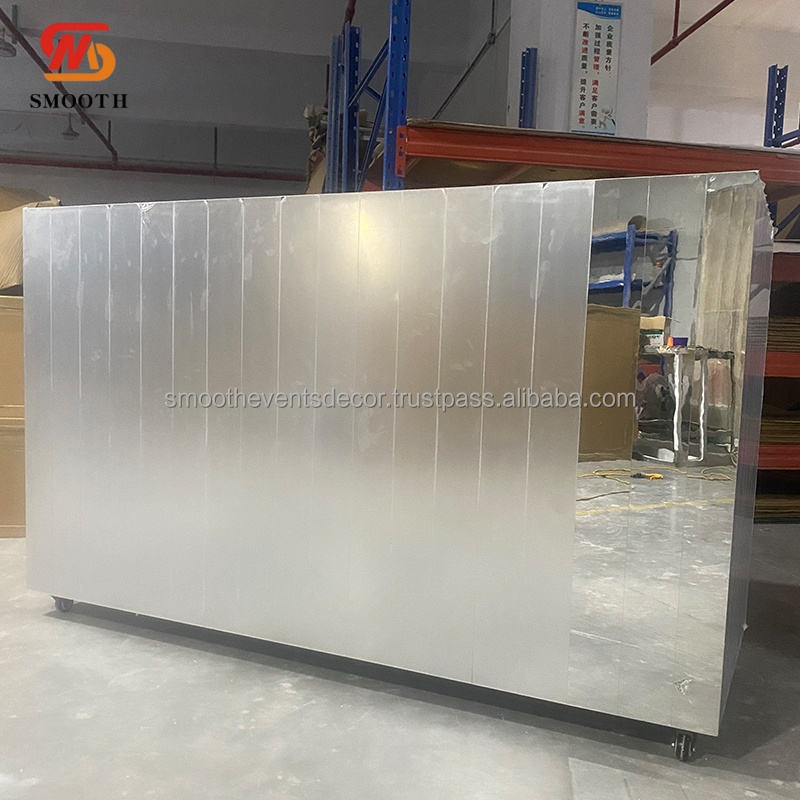 โต๊ะกระจกพีวีซีสำหรับงานแต่งงานโต๊ะกระจกสีเงินโต๊ะบาร์อะคริลิกพร้อมล้อตกแต่งหรูหรา