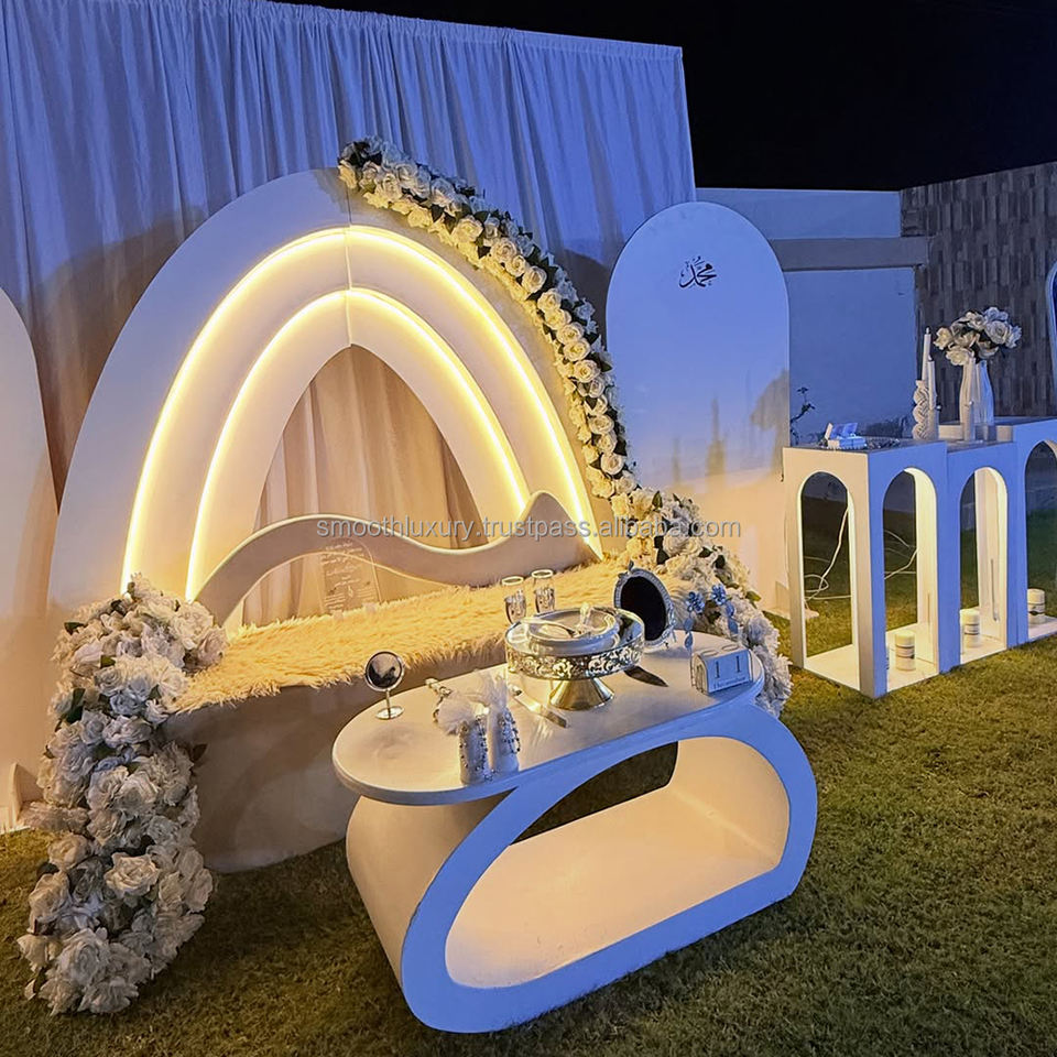 ไฟ LED ติดผนังรูปเนินเขาสำหรับงานแต่งงานที่นุ่มนวลทำให้ภาพพื้นหลังโค้งอะคริลิคทรงสี่เหลี่ยมสำหรับงานแต่งงาน