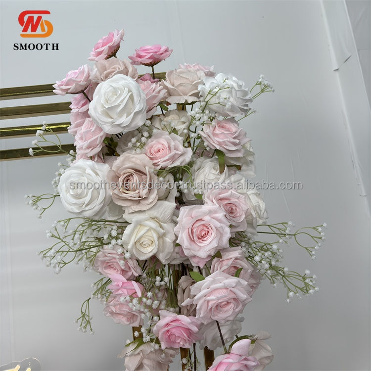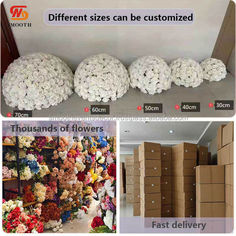 ลูกบอลดอกไม้ประดิษฐ์ทำจากผ้าไหมใช้สำหรับจัดงานแต่งงานลูกบอลดอกไม้ประดับกลางโต๊ะลายดอกไม้แบบเรียบสำหรับตกแต่งงานอีเวนต์