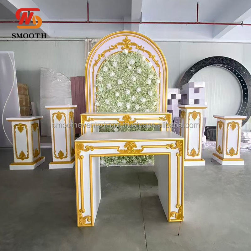 ฉากหลังงานแต่งงานแบบเรียบหรู 3 มิติ พร้อมดอกยิปโซ ติดตั้งบนแท่นสำหรับงานอีเว้นท์