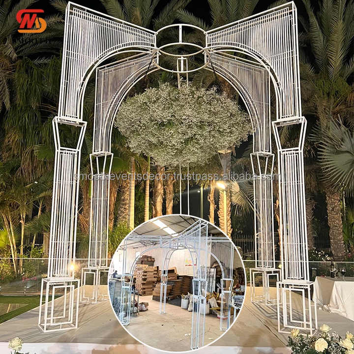 ฉากหลังแต่งงานเรียบภาพพื้นหลังโลหะสีขาวตกแต่งซุ้มโค้งสำหรับงานปาร์ตี้งานอีเว้นท์