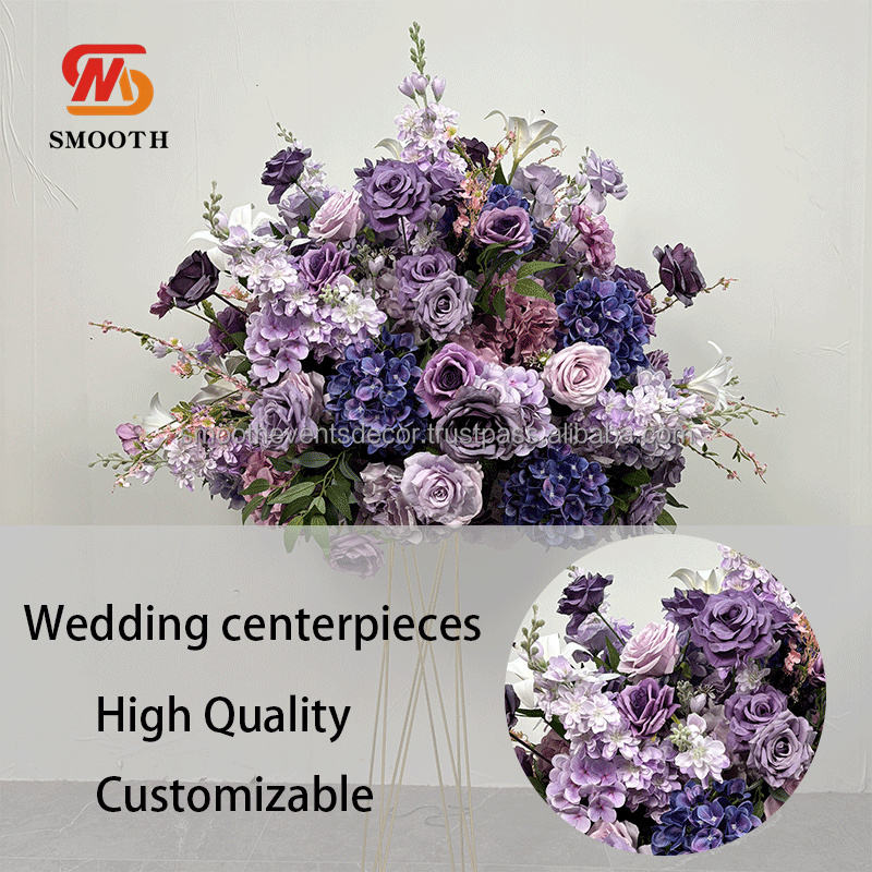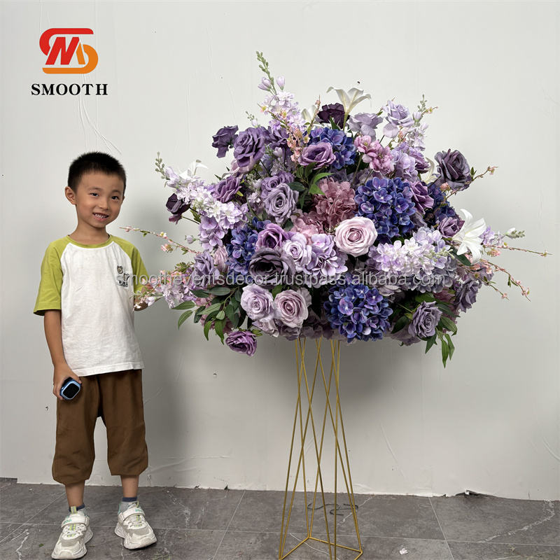 ลูกบอลดอกไม้ทำจากผ้าไหมสีม่วงสำหรับจัดงานแต่งงานแบบเรียบตรงกลางสำหรับจัดงานอีเว้นท์