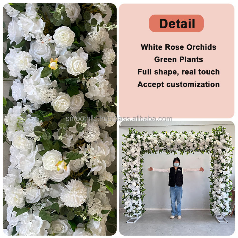 ของตกแต่งงานแต่งงานแบบเรียบชุดสีขาวสุดหรูลายดอกกุหลาบไฮเดรนเยียคาดอกสำหรับงานแต่งงานฉากหลังซุ้มดอกไม้และโต๊ะ