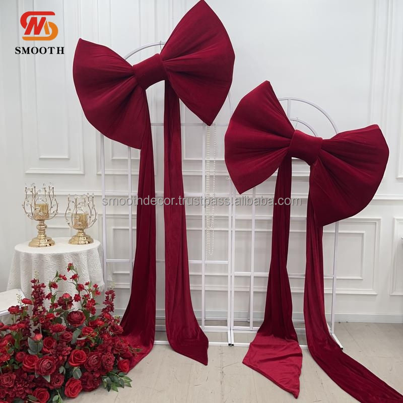 โบว์ผ้ากำมะหยี่สีขาวสำหรับตกแต่งงานเลี้ยงงานแต่งงานแบบเรียบโบว์ขนาดยักษ์สีชมพูสำหรับตกแต่ง