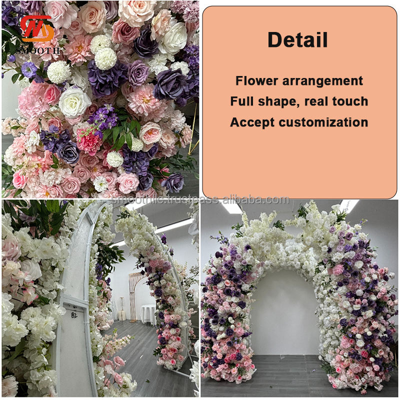 ชื่อผลิตภัณฑ์:ซุ้มดอกไม้ผ้าไหมเทียมฉากหลังดอกไม้สีขาว