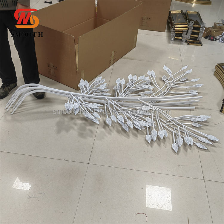 อุปกรณ์ประกอบฉากแต่งงานที่ราบเรียบฉากหลังตกแต่งเวทีรูปต้นไม้เหล็กสีทองขนาดใหญ่สีขาวสำหรับงานแต่งงาน