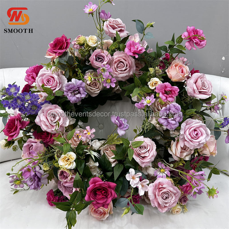 พวงมาลากุหลาบสีชมพูสำหรับงานแต่งงานแบบเรียบพวงมาลัยฐานสำหรับตกแต่งฐานดอกไม้สำหรับเชิงเทียน