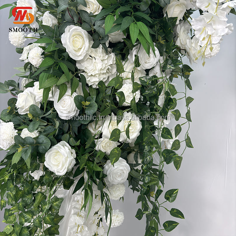 ซุ้มดอกกุหลาบสีขาวประดับด้วยผ้าม่านสำหรับตกแต่งเวทีงานแต่งงานโค้งโค้งโค้งโค้งโค้งโค้งโค้งโค้งโค้งโค้งสีขาว
