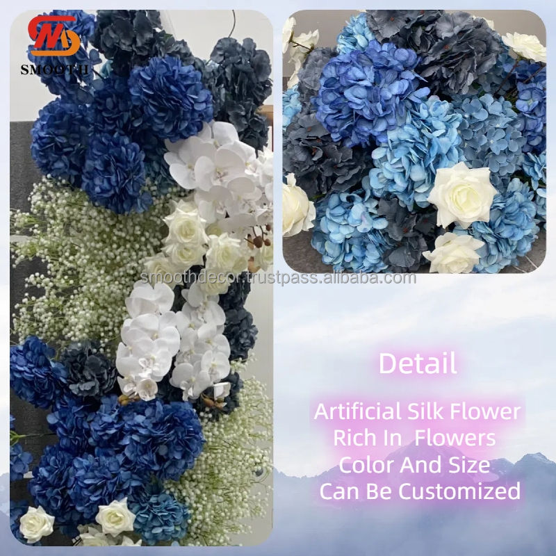 งานแต่งงานที่ราบรื่นฉากหลังโค้งกุหลาบสีฟ้าการจัดดอกไม้สีฟ้าซุ้มดอกไม้สำหรับงานแต่งงาน