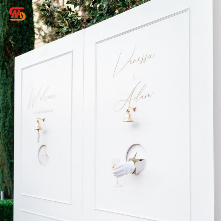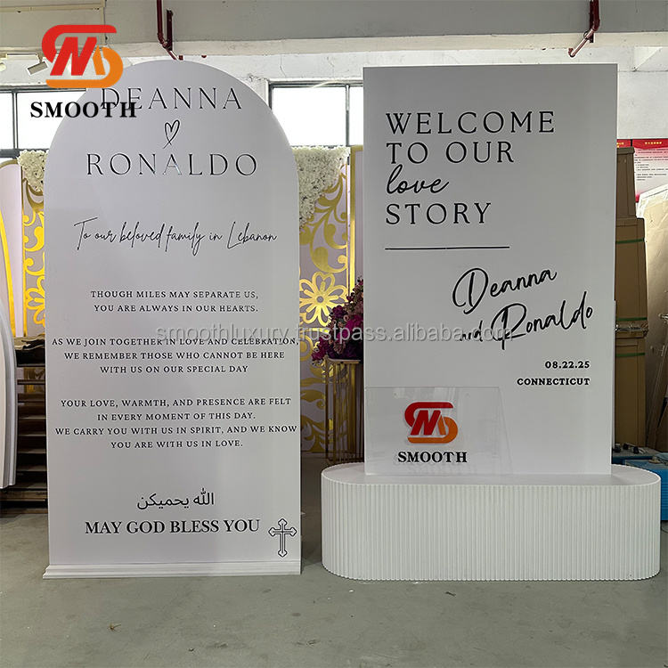 แผ่นป้ายต้อนรับเรียบแผ่นรองสีขาวสำหรับฉากหลังมีฟองสำหรับงานปาร์ตี้งานแต่งงาน
