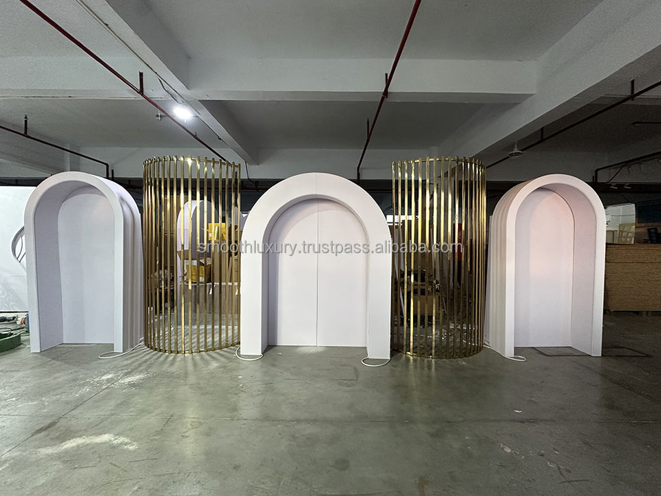 ฉากหลังงานอีเวนต์สีขาวเรียบแสงไฟ LED แบบโค้งอะคริลิคซุ้มโค้งพีวีซีสีขาวสำหรับตกแต่งงานกิจกรรม