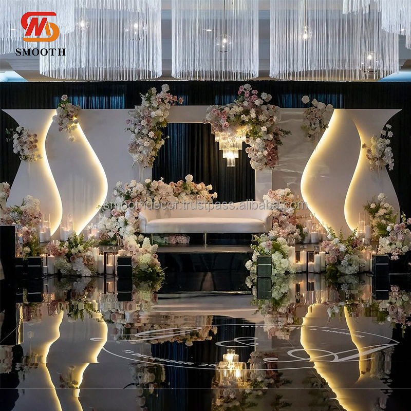 ฉากหลังงานแต่งงานอะคริลิคสีขาวเรียบหรู ดีไซน์โค้ง 3 มิติ ทนทาน ตกแต่งผนังอย่างมีระดับ